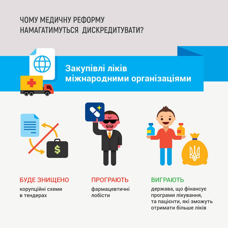 Впровадження референтних цін на ліки суттєво вплине на їх вартість та унеможливить «накрутки», коли ціна одного й того ж препарату в Україні вища, ніж, наприклад, у Польщі. А закупівля ліків через міжнародні організації знищить корупцію на тендерах.