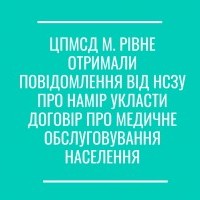 Центри ПМСД м. Рівного вчора, 13.08.2018р., отримали повідомлення від Національної служби здоров'я України (далі - НСЗУ) про намір укласти договір про медичне обслуговування населення.