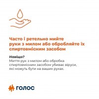 Часто і ретельно мийте руки з милом або обробляйте їх спиртовмісним засобом - миття рук з милом або обробка спиртовмісним засобом убиває віруси, які можуть бути на ваших руках.