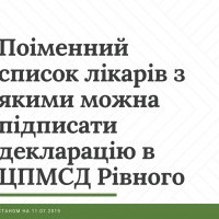 Список лікарів Центрів ПМСД Рівного з якими пацієнти ще можуть підписати декларацію